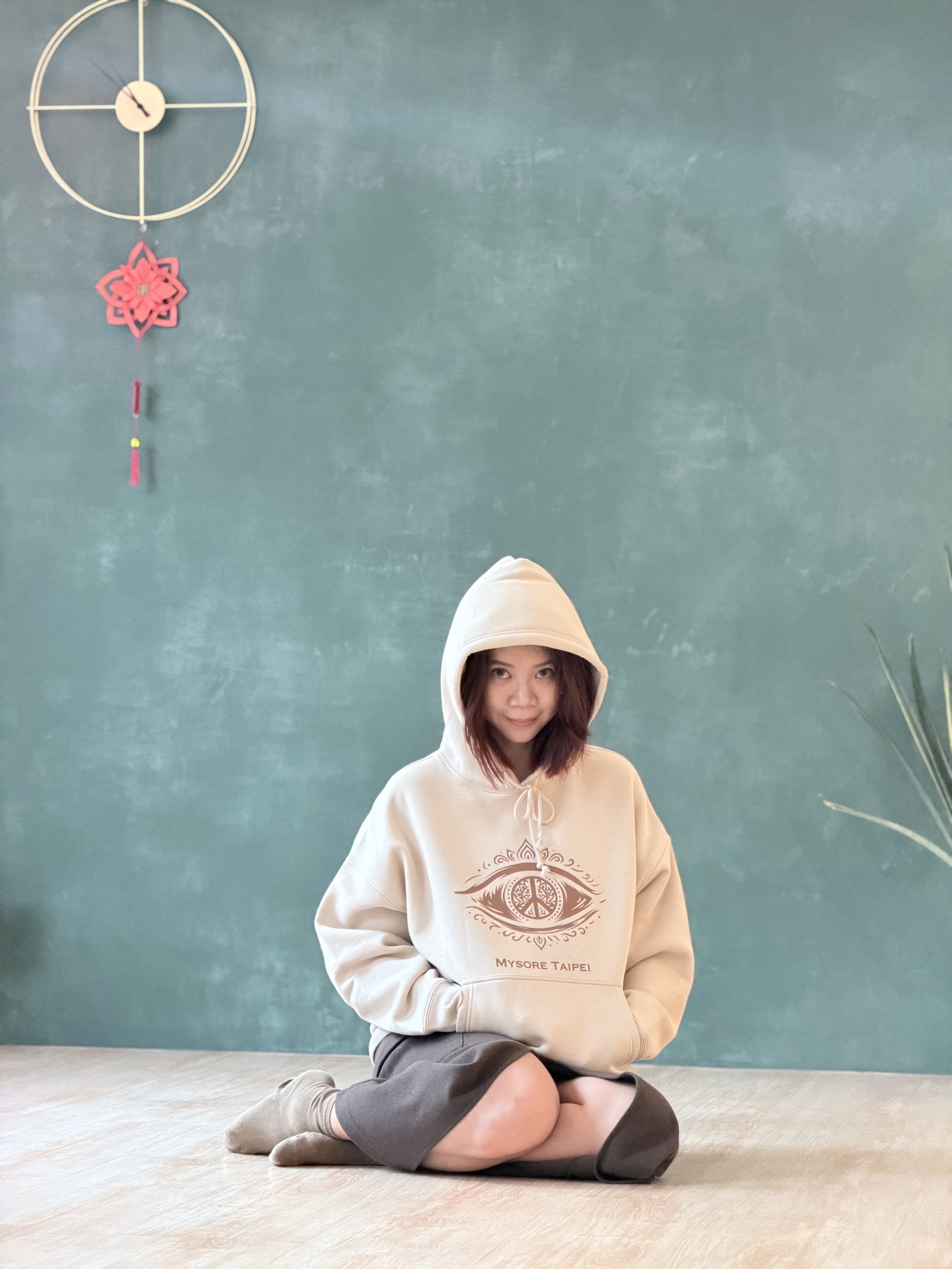 這次的圖像設計,結合了Benson老師背部刺青的元素,也像是一種提醒,提醒我們想要練習的,不只是瑜伽的動作,更是我們希望自己能活成的狀態:安靜、清明、溫柔,卻很有力量。